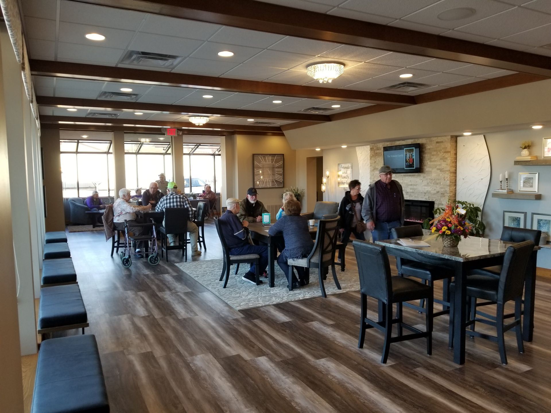 It space is welcoming and comfortable. It offers a wide compliment of services and amenities to create a calming environment. There is a coffee bar, children’s play room, a sun room streaming with natural light, and several comfortable seating areas. This facility offers ample room for a large service as well as the ability to serve a catered lunch.